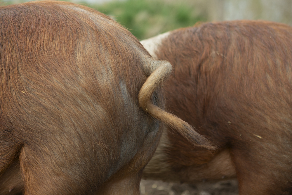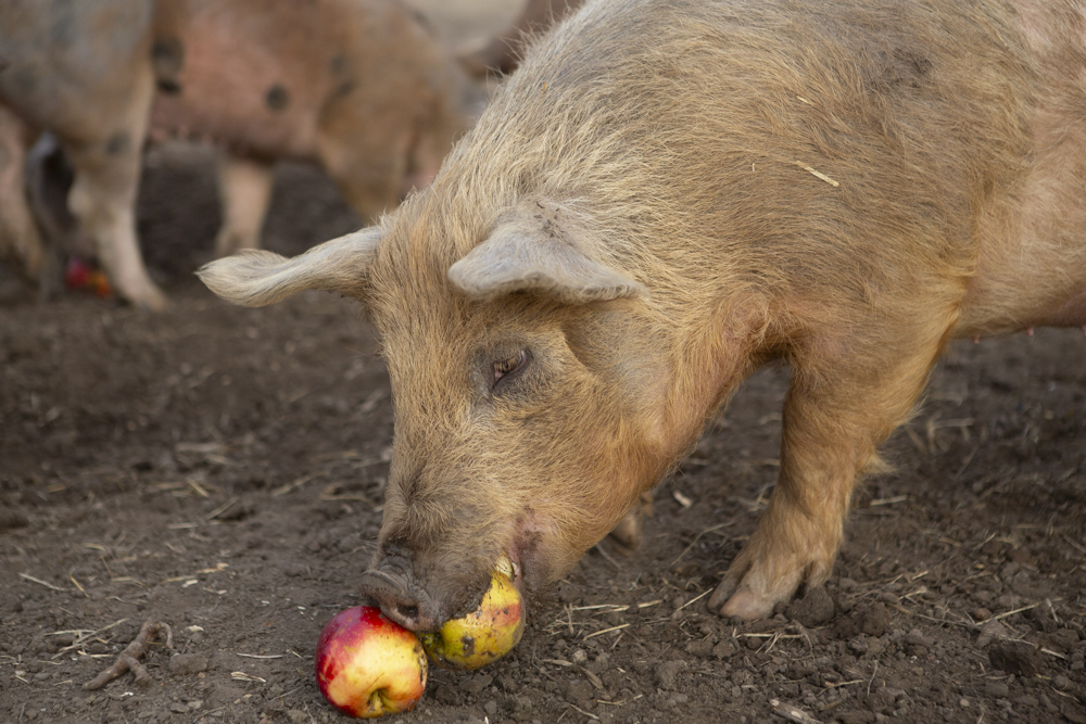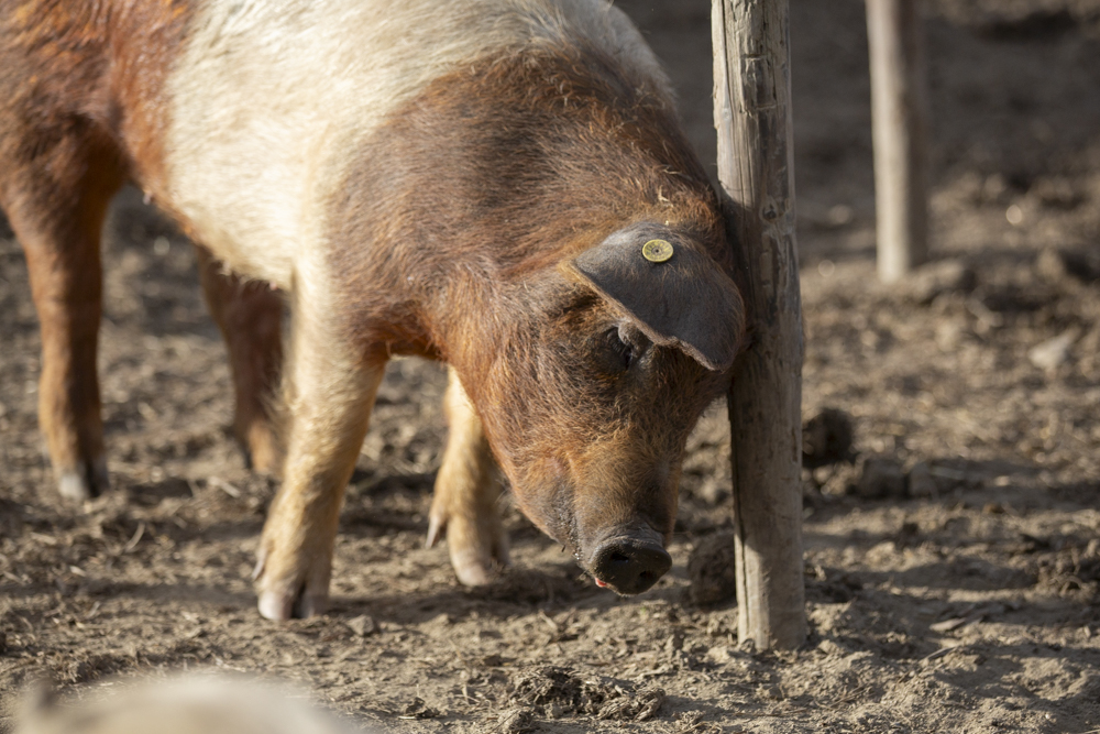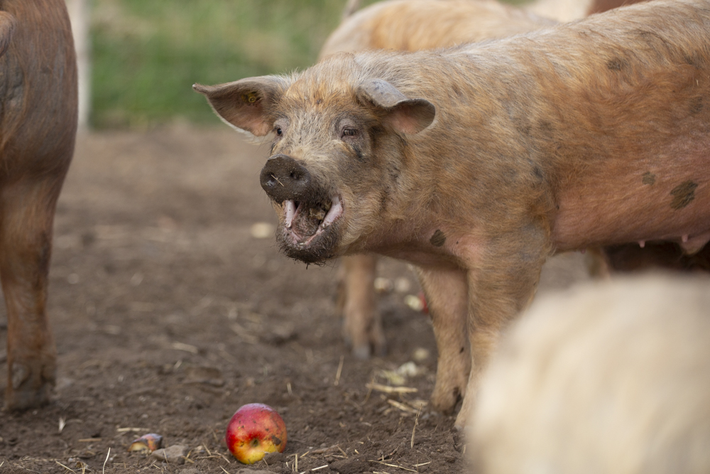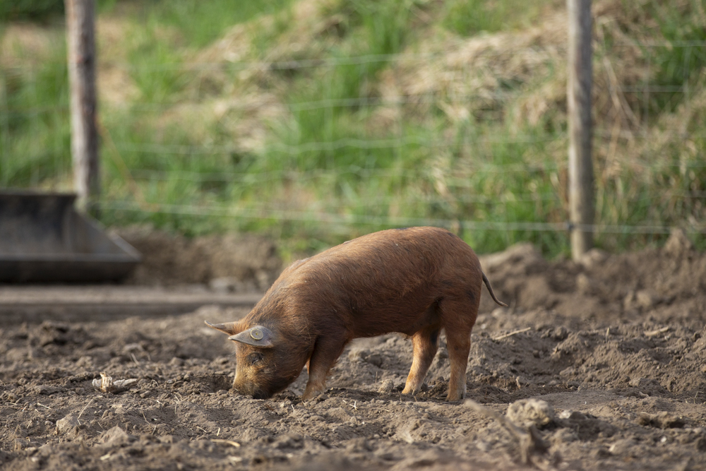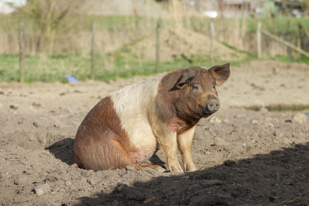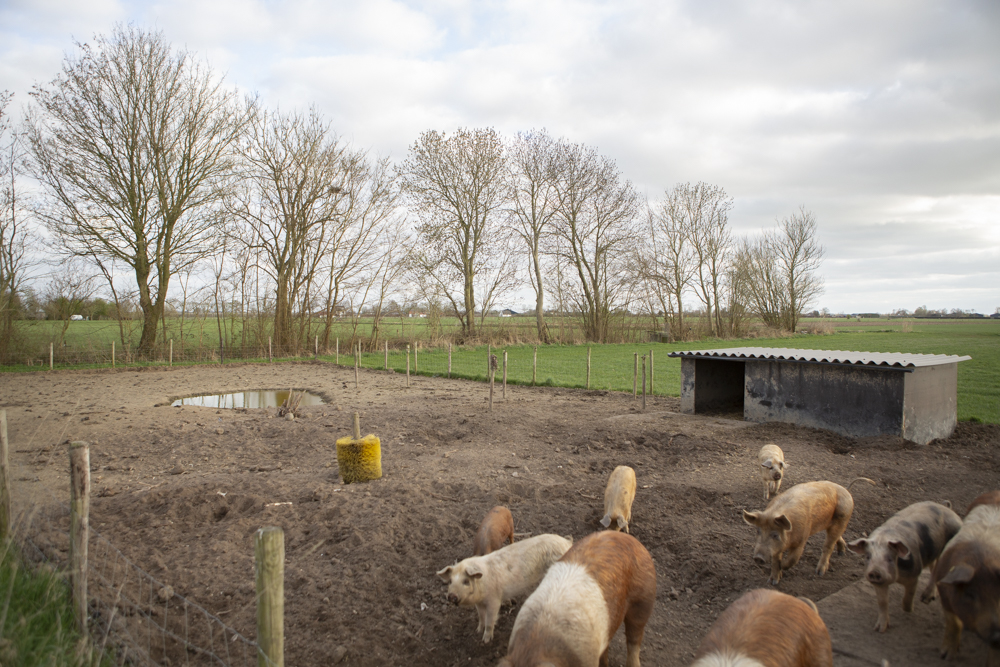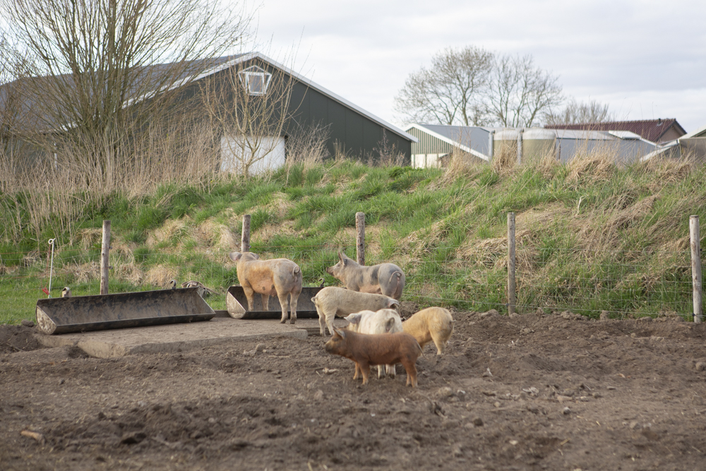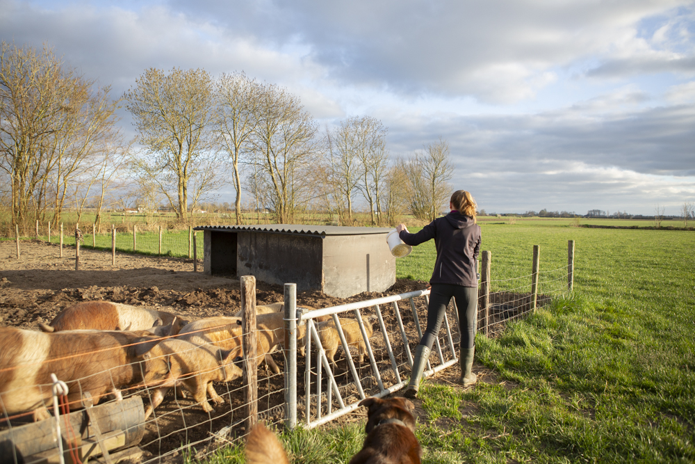 Renate houdt haar varkens op kleine schaal, waarbij dierenwelzijn voorop staat. Ze biedt haar varkens een ruime weide met daarin een modderpoel, een comfortabel nachtverblijf met volop stro, gevarieerde en duurzame voeding, en voldoende materiaal om tegenaan te schuren en mee te spelen.
