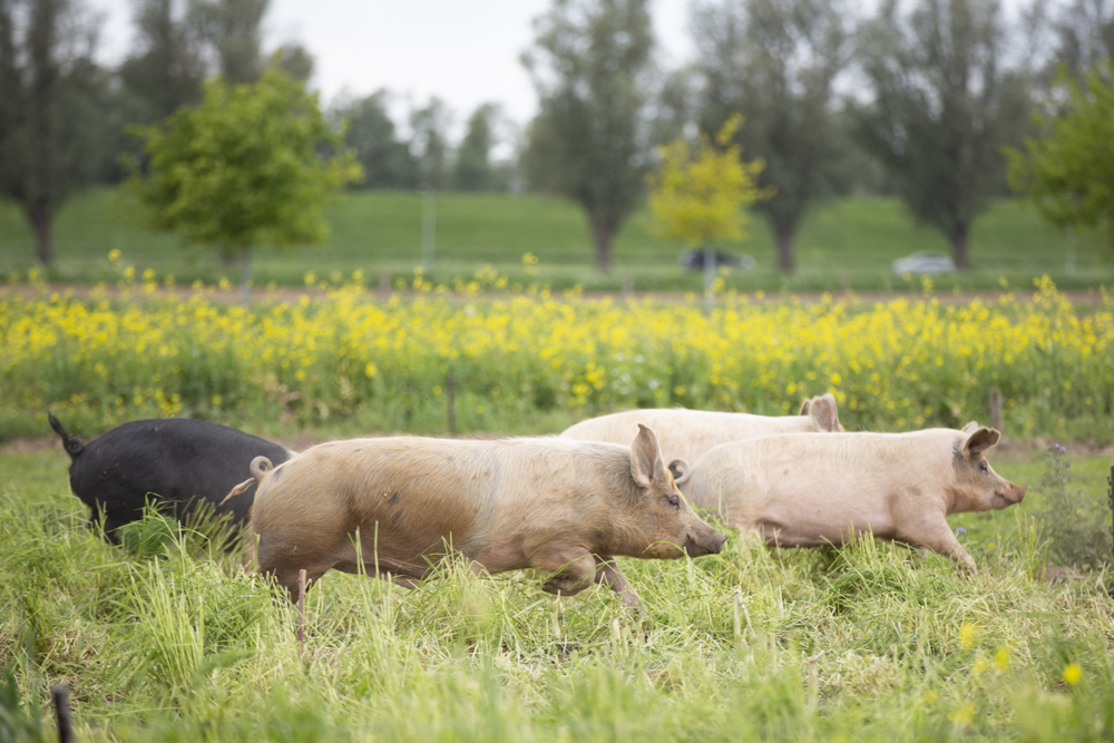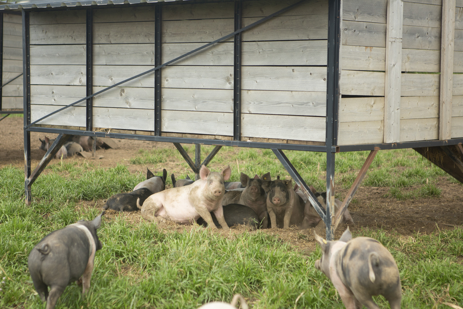 De biggen worden gebaard door eigen zeugen. Er is een aparte, comfortabele kraamstal, waarin bij heet weer zelfs voor een modderpoel wordt gezorgd. De biggen worden tien maanden oud. Het slachthuis is kleinschalig en dichtbij.