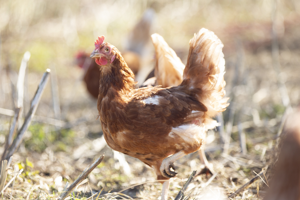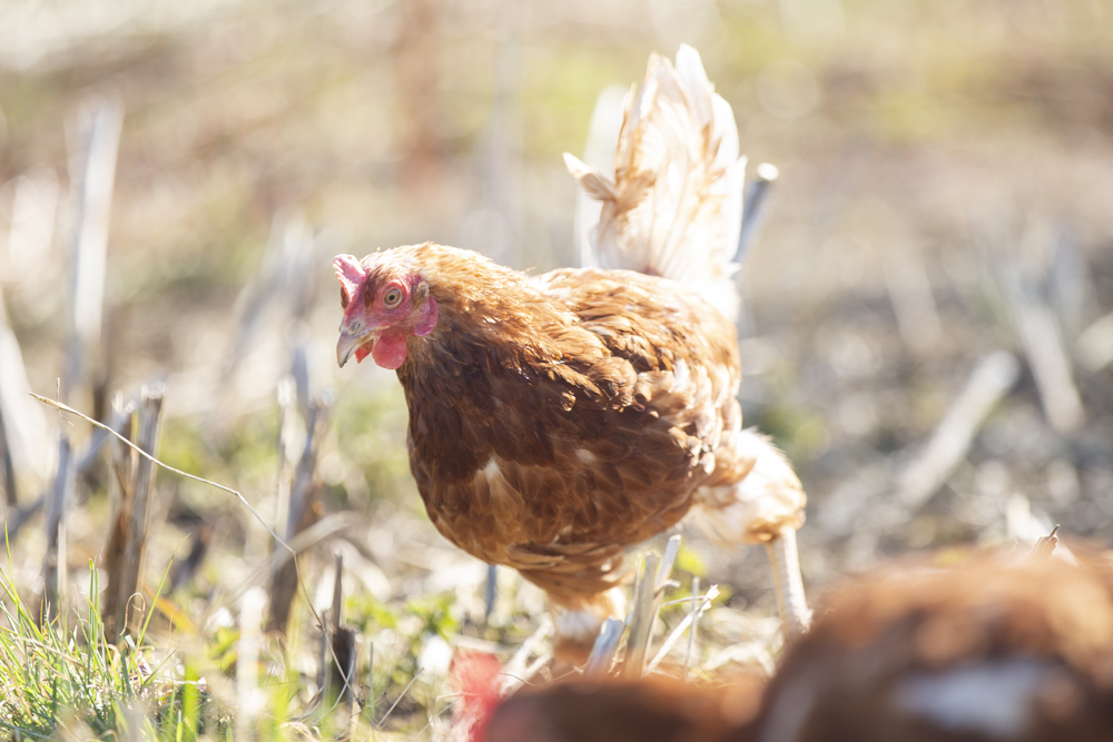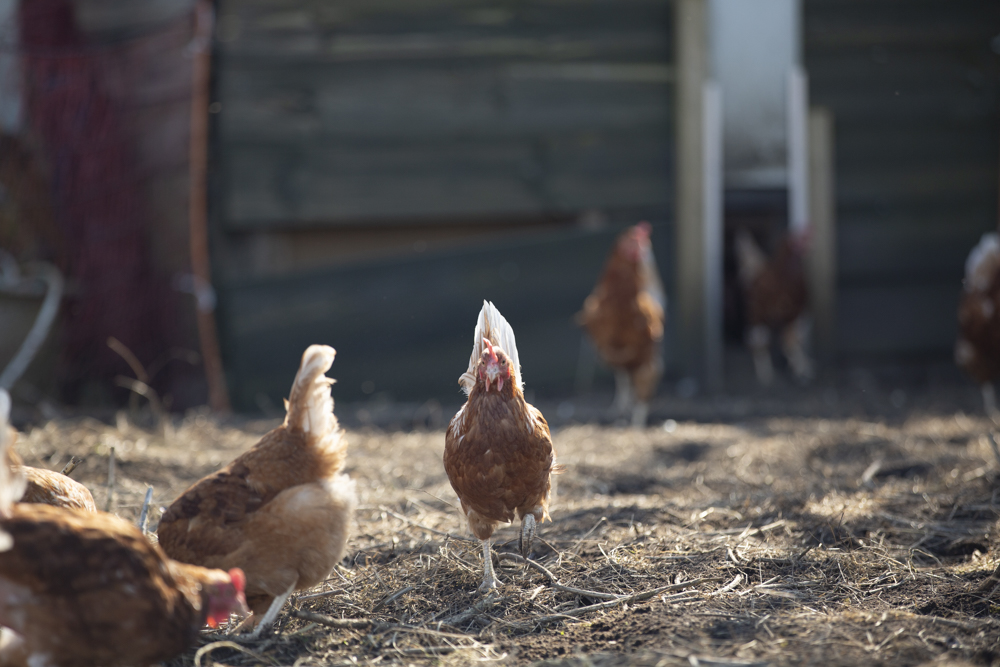 Net als de varkens scharrelen de kippen in alle rust rond in een rijke bodem, waar ze ongestoord kunnen zoeken naar bodemdiertjes. Na enige tijd krijgen ze een nieuw stuk grond tot hun beschikking.