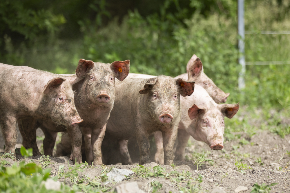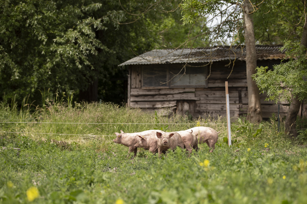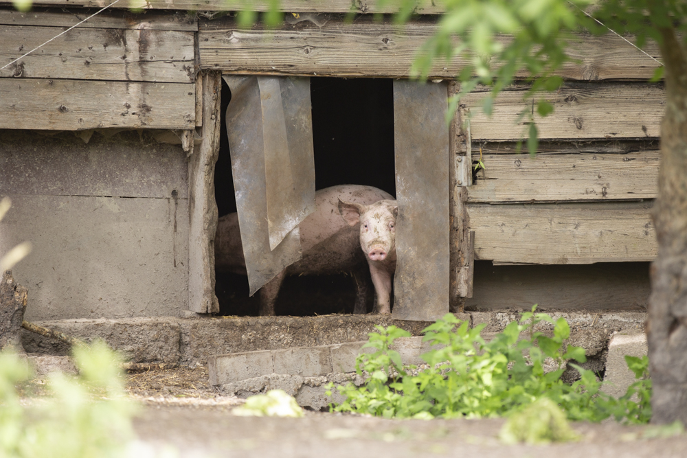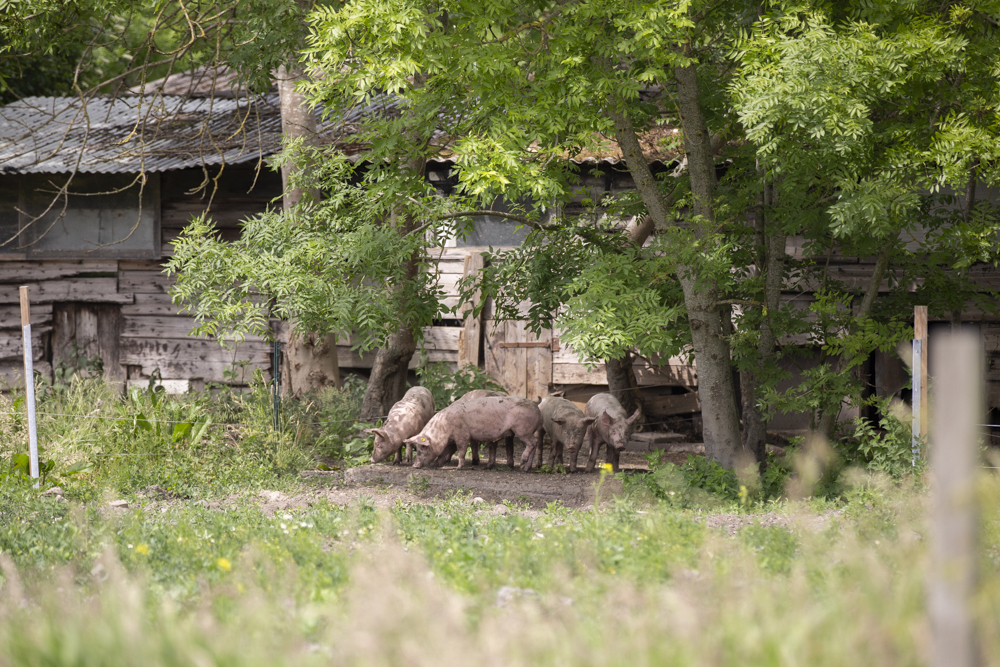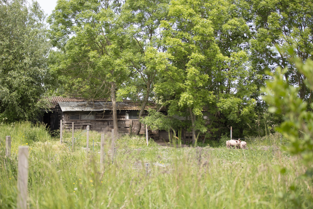 Na de kippen kwamen er al snel twee jonge varkens bij. Deze werden niet als huisdieren beschouwd en kregen geen naam, maar werden wel met de grootste zorg grootgebracht. Stijn hecht veel waarde aan een stressvrij leven voor zijn dieren, waarbij ze ten alle tijden hun natuurlijke gedrag kunnen uitoefenen. Jaarlijks brengt hij ongeveer tien varkens groot, die hij aankoopt bij een vergelijkbare varkenshouder. De varkens zijn dan drie maanden oud, de leeftijd waarop ze klaar zijn om te worden gescheiden van de zeug. In de gangbare varkenshouderij gebeurt dit al na vier weken, maar Stijn kiest bewust voor biggen die langere tijd bij de zeug mochten blijven.