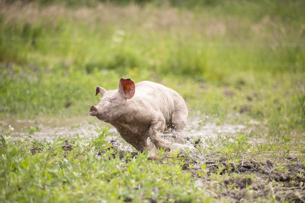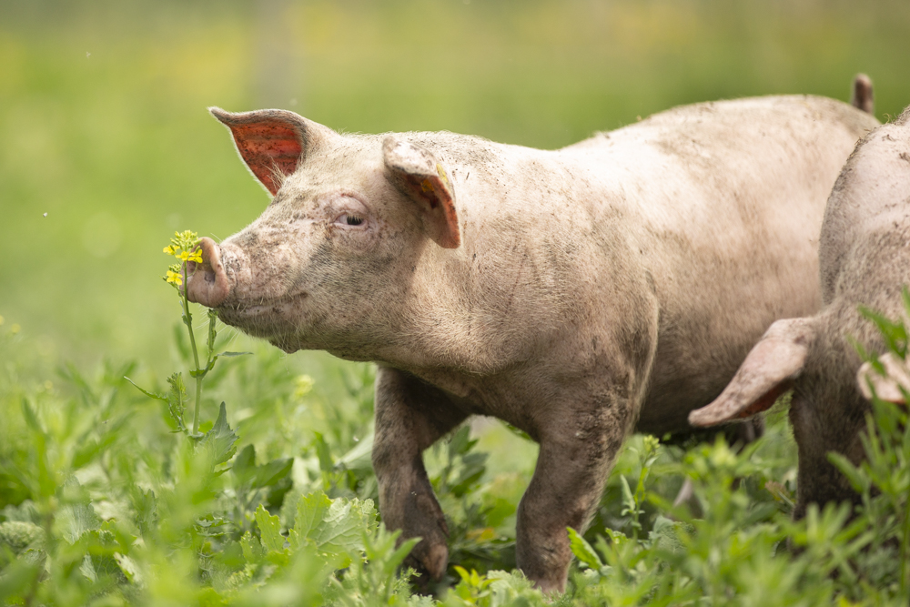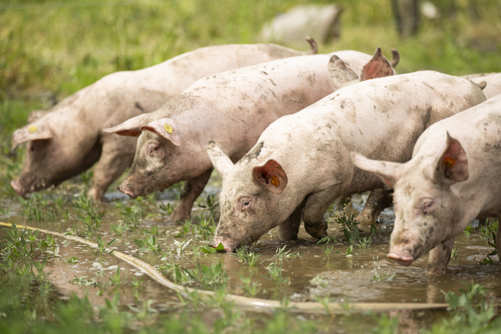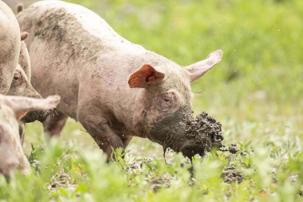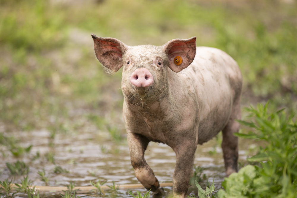 Na de kippen kwamen er al snel twee jonge varkens bij. Deze werden niet als huisdieren beschouwd en kregen geen naam, maar werden wel met de grootste zorg grootgebracht. Stijn hecht veel waarde aan een stressvrij leven voor zijn dieren, waarbij ze ten alle tijden hun natuurlijke gedrag kunnen uitoefenen. Jaarlijks brengt hij ongeveer tien varkens groot, die hij aankoopt bij een vergelijkbare varkenshouder. De varkens zijn dan drie maanden oud, de leeftijd waarop ze klaar zijn om te worden gescheiden van de zeug. In de gangbare varkenshouderij gebeurt dit al na vier weken, maar Stijn kiest bewust voor biggen die langere tijd bij de zeug mochten blijven.