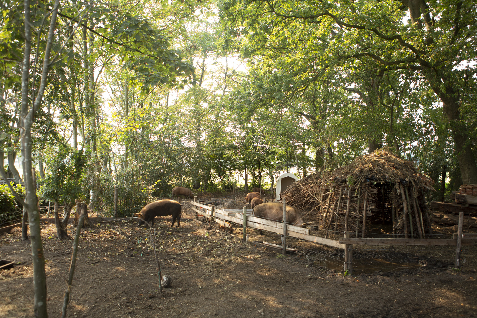 De varkens worden geslacht als ze ongeveer een jaar oud zijn. De slachterij is op tien minuten rijden, en werkt kleinschalig. Ze gaan altijd met z’n tweeën, en krijgen voer en drinken mee. Ze blijven tot het laatst bij elkaar. De boeren hebben het er moeilijk mee als de varkens weggaan. Ze houden van hun varkens, en dat is niet verwonderlijk: de dieren zijn vriendelijk en dol op aandacht.