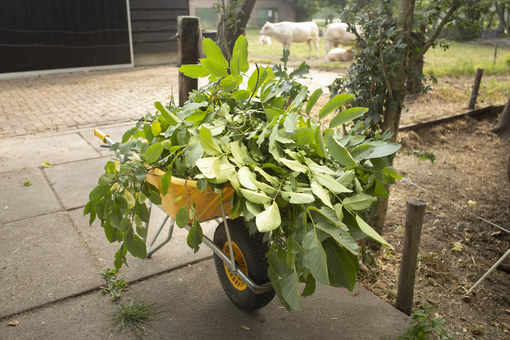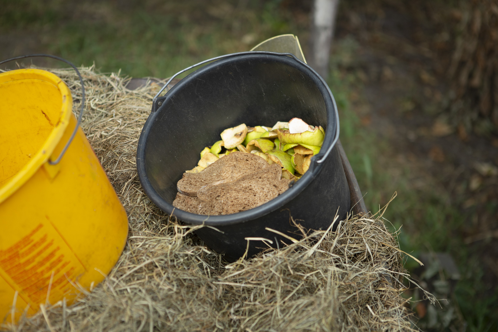 Het voer is gevarieerd en seizoensgebonden. De basis bestaat uit brokken die alle benodigde voedingsstoffen bevatten. Daarnaast eten ze (rest)groenten uit de moestuin, valappels, eikels, kastanjes, gras met klaver, verse mais, geplette tarwe en hooi – allemaal van de eigen boerderij. Ook krijgen ze elke week oud brood van de lokale bakker.